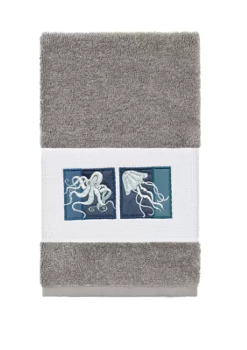 The Ava Embellished Hand Towel by Linum Home Textiles features glistening sea creatures framed in colors of the ocean embroidered on a textured woven border. This soft and luxurious towel is made of genuine premium Turkish cotton and offers lasting absorbency and superior durability. Available in a range of lovely towel colors Embellished in USA Warranty available Made in Turkey Imported Product Specifications 16 in x 30 in Material & Care Superbly absorbent, quick-drying fabric Cotton Machine washable