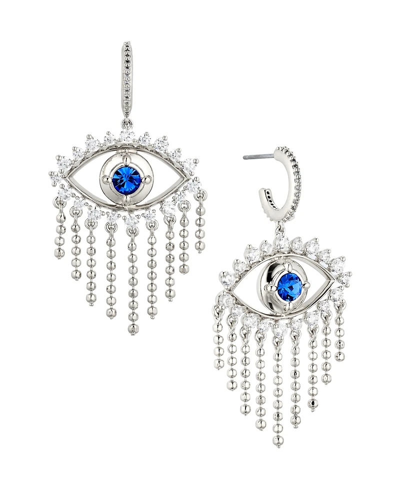 Ava Nadri Cubic Zirconia Small C-hoop Evil Eye Fringe Earrings