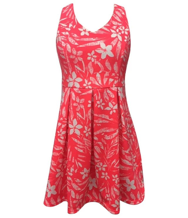 Ava & Yelly Big Girls Sleeveless Printed Textured Rib Knit Fit-And-Flare Dress