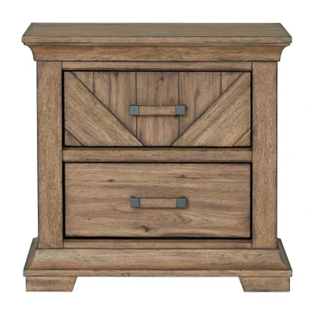 Streamdale Furniture Farmhouse 2-Drawer Nightstand with Wooden Accents