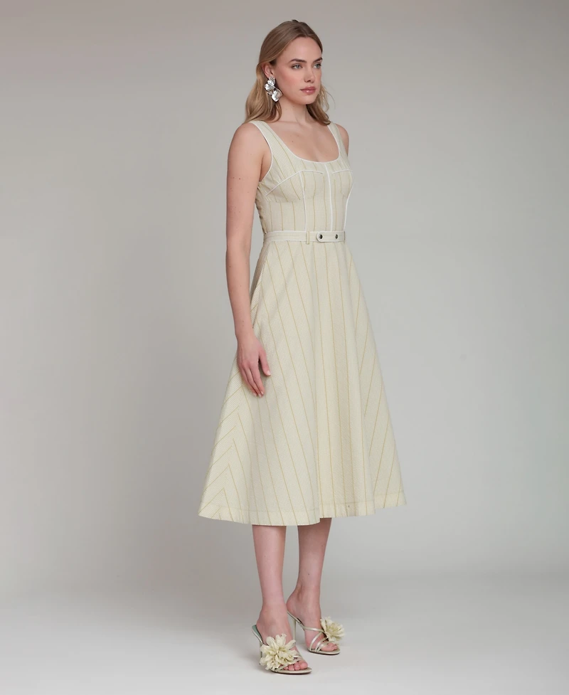 Avec Les Filles Women's Contrast Piping Midi Dress