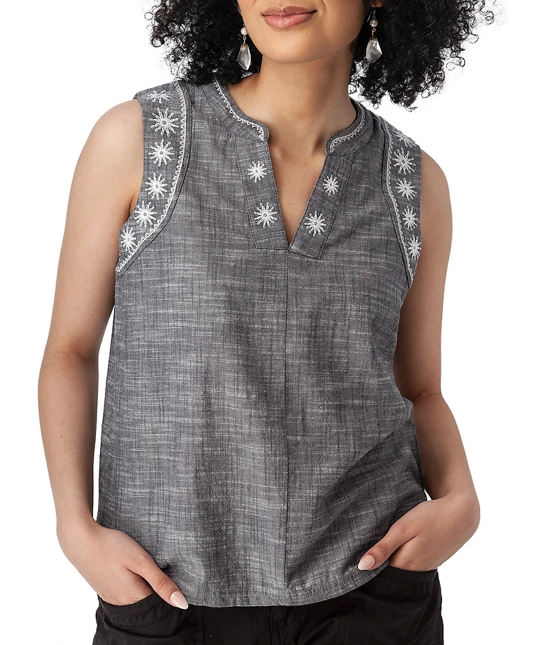 Aventura Festival Organic Cotton Split V-Neck Embroidered Tank Top in Franklin, TN