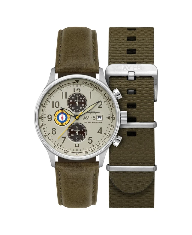 Avi-8 Men's Hawker Hurricane Classic Chronograph Khaki Leather Strap Watch, 43.5mm