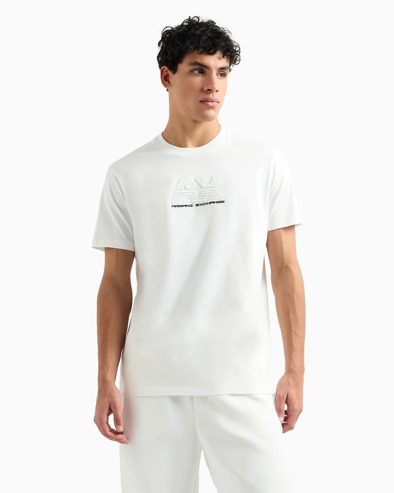Complete with a large A|X logo at the chest, this A|X Armani Exchange T-shirt is in pure cotton for exceptional comfort.