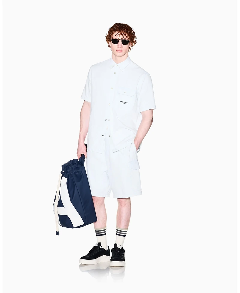 A|X Armani Exchange Men's Short Sleeve Denim Striped Shirt