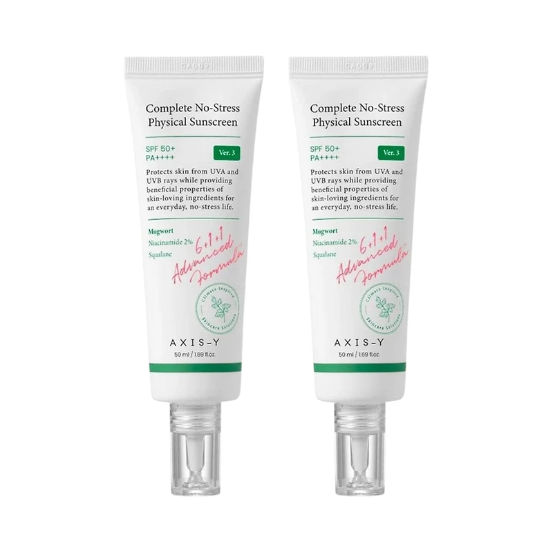 Complete No-Stress Physical Sunscreen V.. Benefits: Shields skin from UV damage while supporting hydration and skin barrier health.. SPF 50+ and PA++++ delivers instant UV protection.. Non-greasy, no white cast finish.. Vegan, cruelty-free, fragrance-free, safe for sensitive or acne-prone skin.. Key Ingredients: Mugwort: Soothes skin discomfort. 2% Niacinamide: Brightens. Squalane: Deep hydration. Hyaluronic Acid: Nourishes dry skin. Zinc Oxide & Titanium Dioxide: Effective UV defense. Features: 2 Complete No-Stress Physical Sunscreen V.3 (1.69 oz).