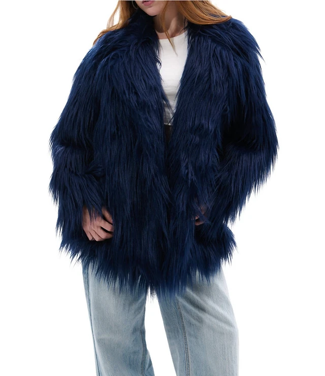 AZALEA WANG Breckenridge Blue Faux Fur Coat