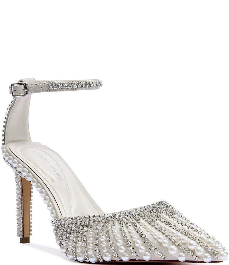 Azalea Wang Davina Pearl and Rhinestone Ankle Wrap Pumps