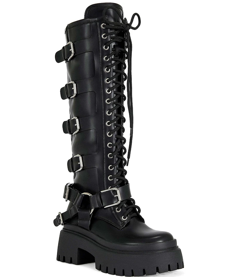Azalea Wang Saxen Multi Strap Lace Up Tall Combat Boots