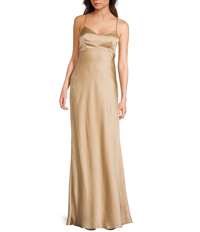 B. Darlin Satin Drape Neck Spaghetti Strap Lace Up Back Dress