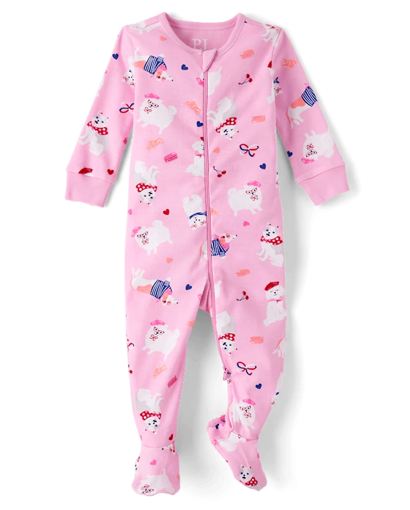 Baby And Toddler Girls Dog Snug Fit Cotton Footed One Piece Pajamas