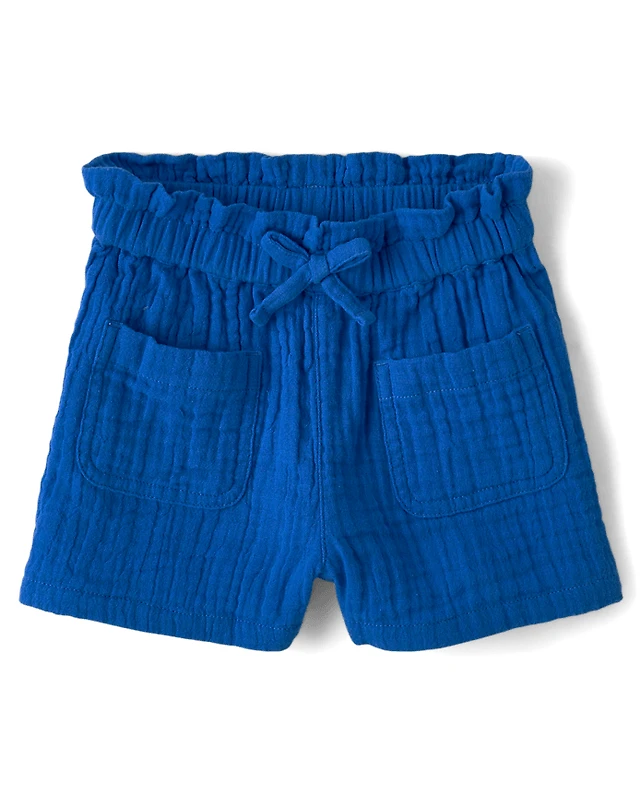 Girls Gauze Paperbag Waist Shortie Shorts