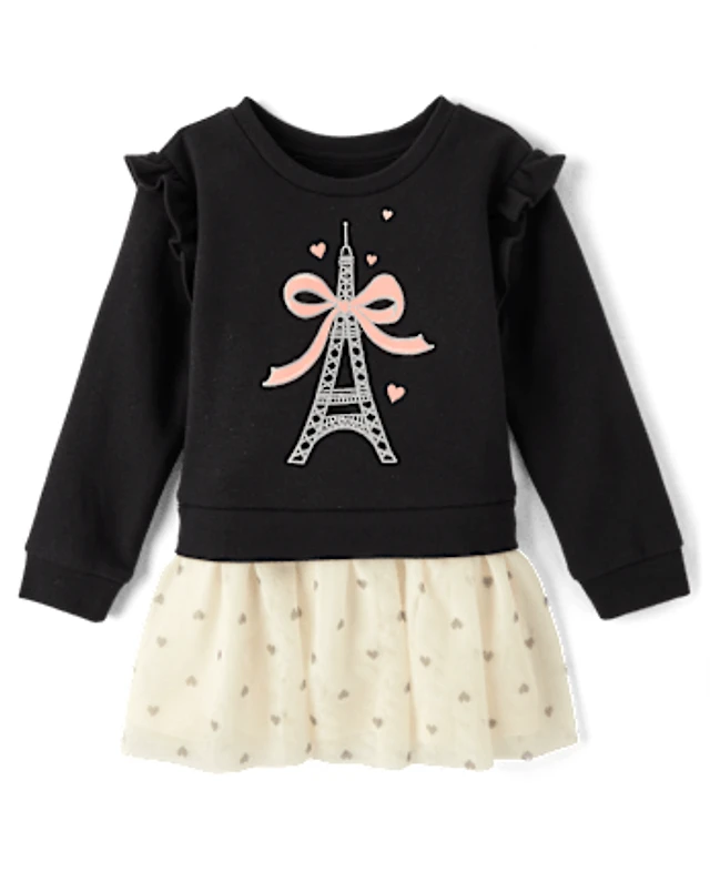 Baby And Toddler Girls Glitter Paris Sweatshirt Dress