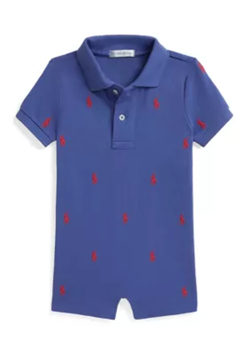 Baby Boys Polo Pony Cotton Mesh Shortall
