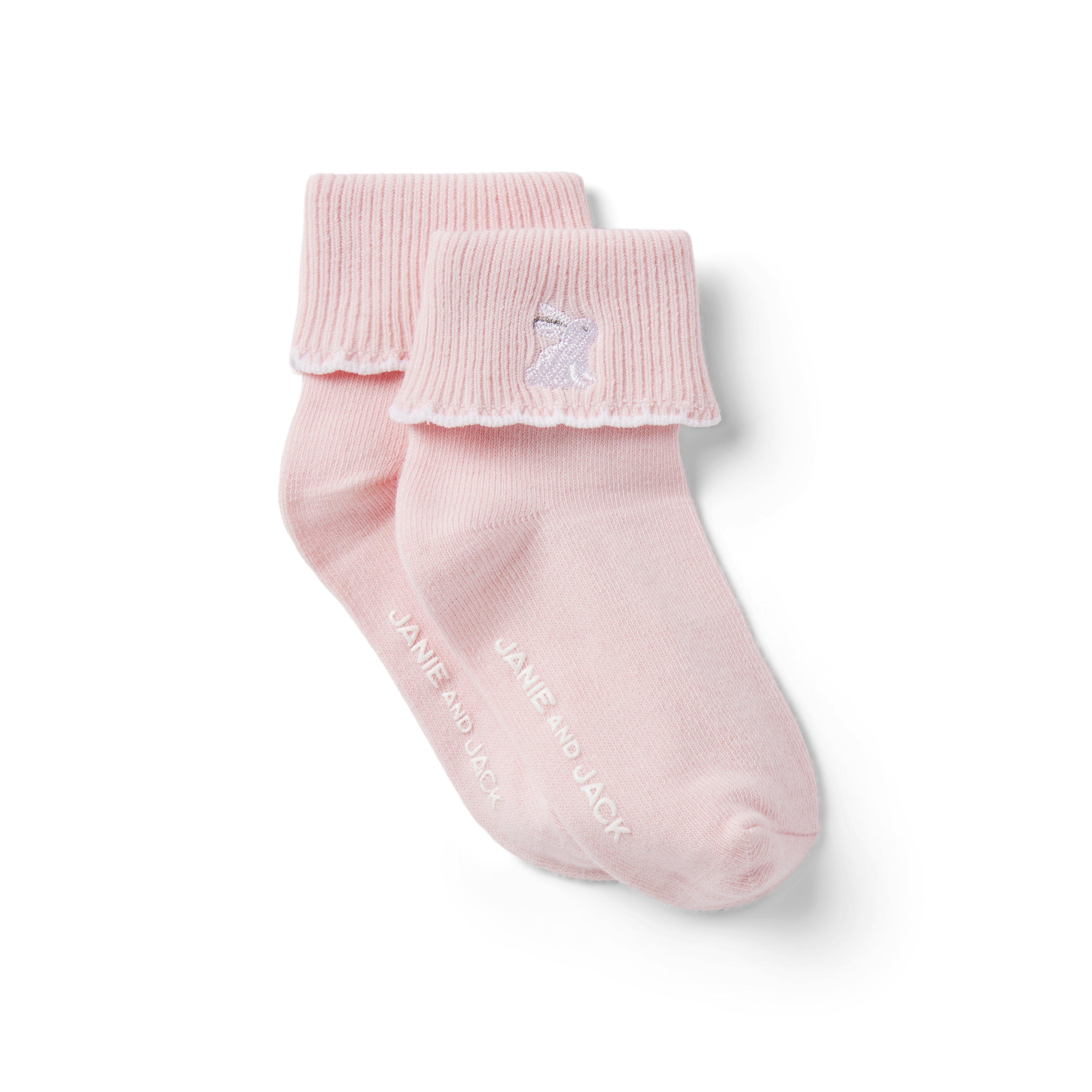 Little embroidered bunnies make these fold over socks a must for all their spring looks. Detailed with a scalloped edge and made in a soft and stretchy cotton-nylon blend. 78% Cotton/19% Nylon/3% Spandex Textured Grips Machine Wash, Gentle Cycle; Imported