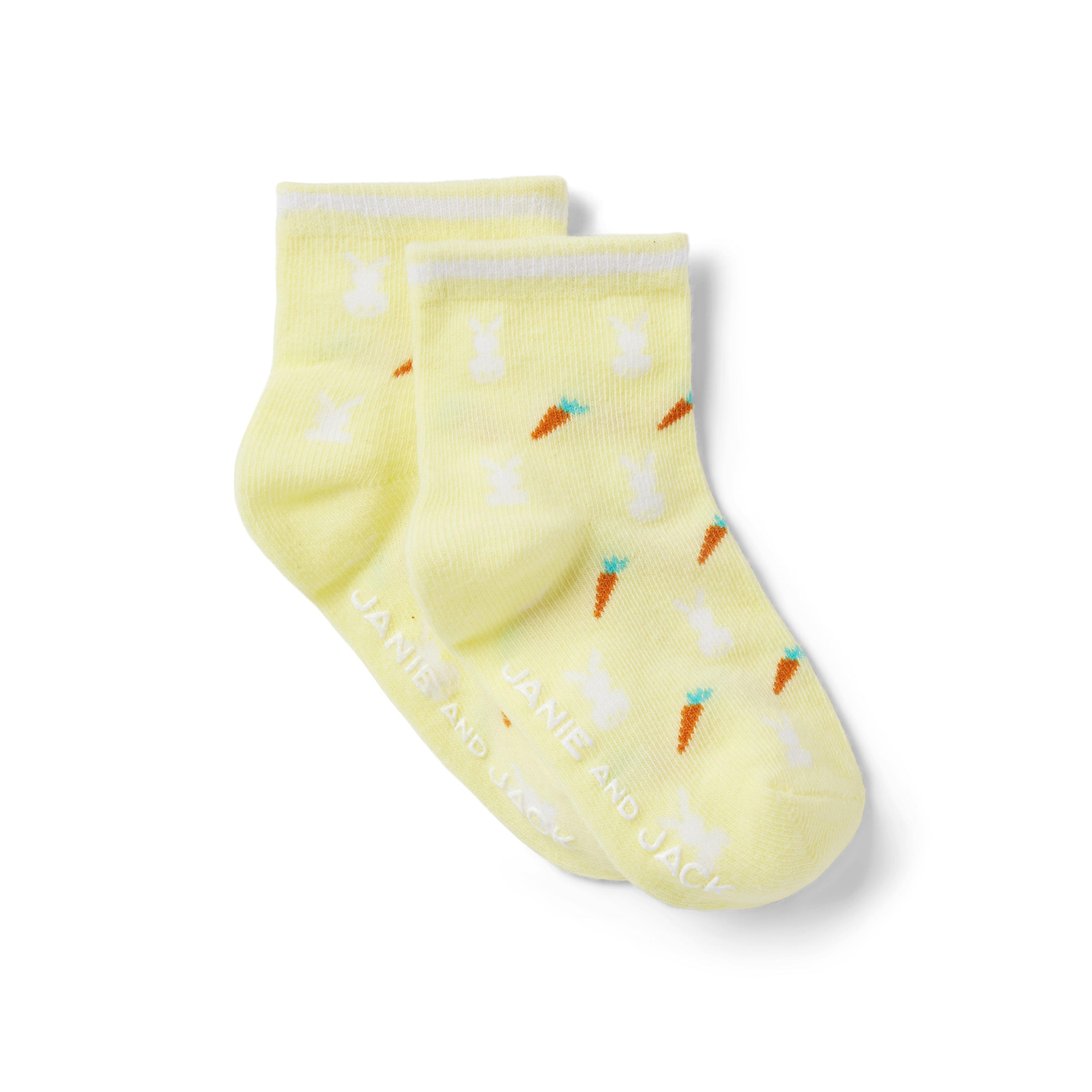 For hoppy feet, our soft and stretchy socks with intarsia-knit bunnies and carrots are the perfect choice. 61% Cotton/29% Nylon/5% Spandex Textured Grips Machine Wash, Gentle Cycle; Imported