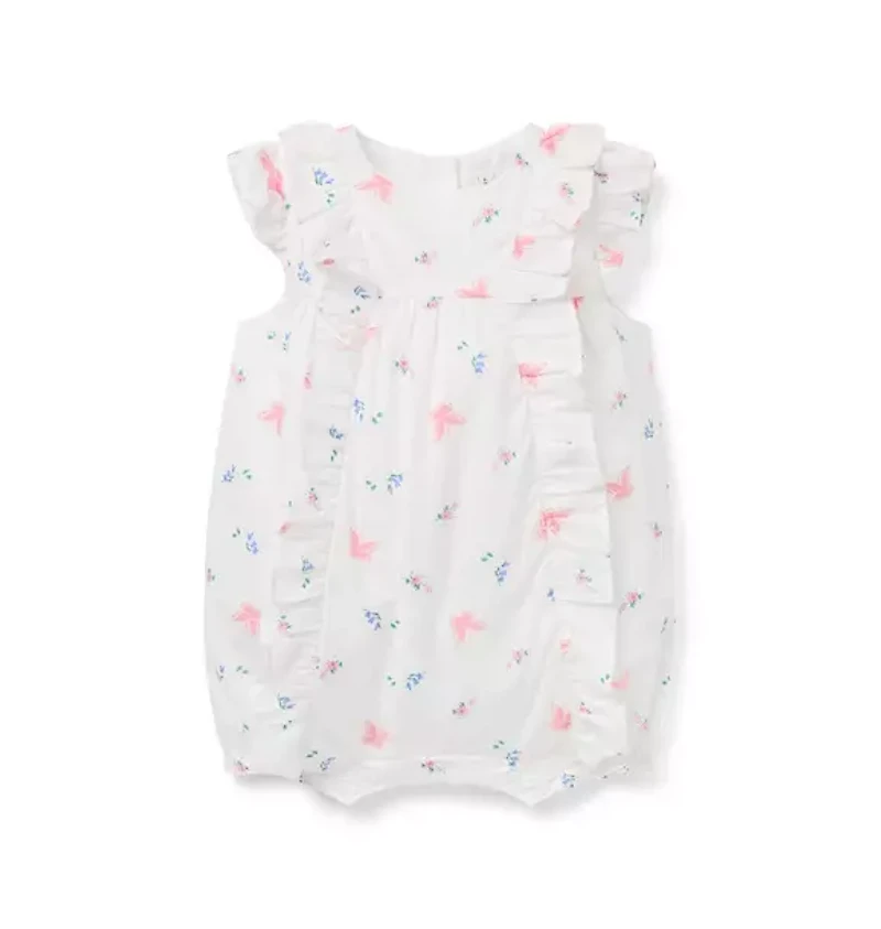 First moments are all aflutter in our butterfly floral romper. Designed with ruffle details, it's always an instant love. 100% Cotton Batiste; Lining: 100% Cotton Fully Lined Short Sleeve Button Back; Snaps Underneath Makes The Perfect Gift For Baby Machine Washable; Imported