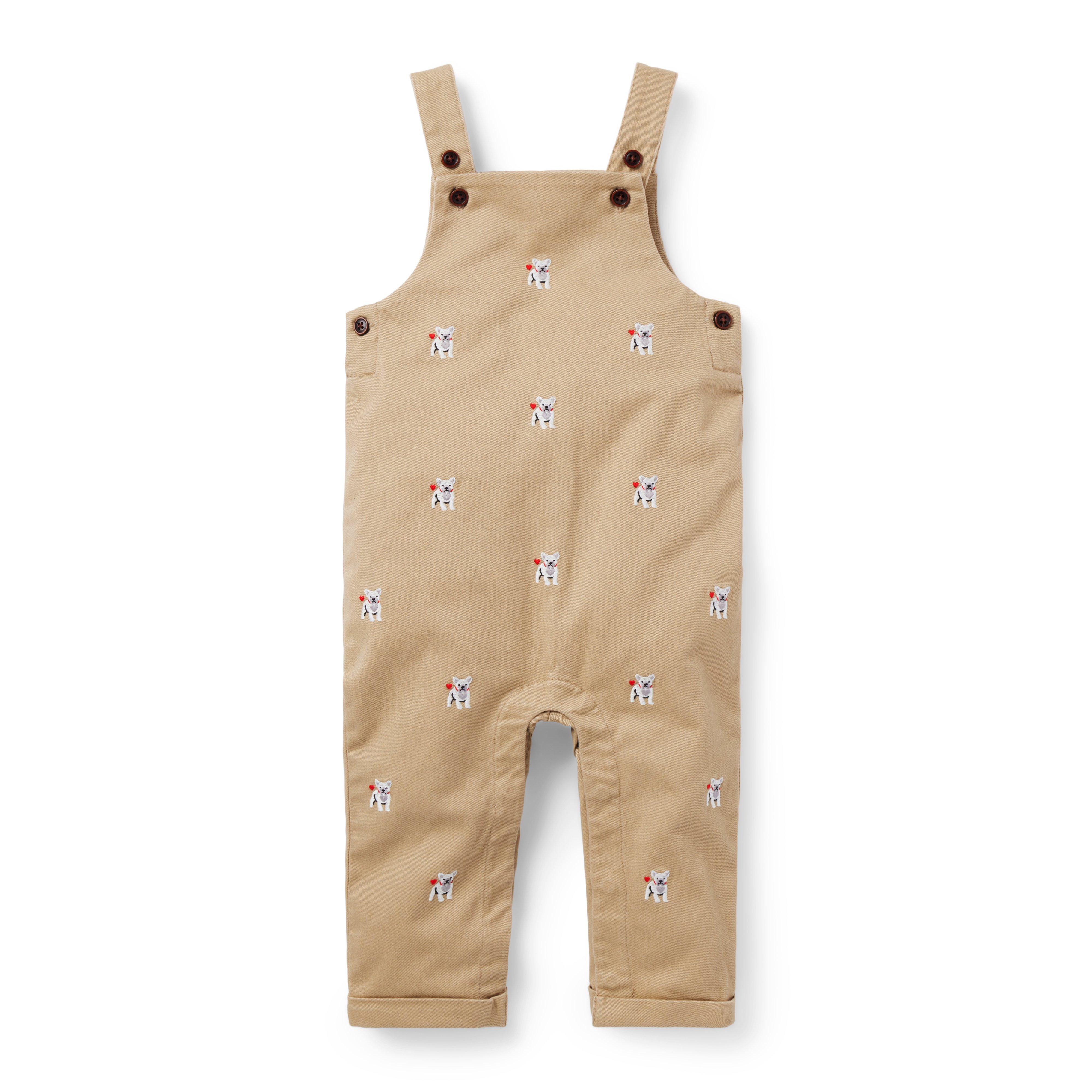 An overall favorite for their first Valentine's Day or any day. With details to love, from the embroidered French Bulldogs to the little back pocket and roll cuffs. 74% Cotton/24% Polyester/2% Spandex Twill Fully Lined; Buttons At Side Adjustable Button Straps Full Leg Snaps Makes The Perfect Gift For Baby Machine Washable; Imported