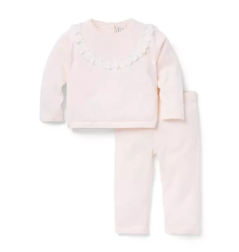 Baby Eyelet Trim Matching Sweater Set