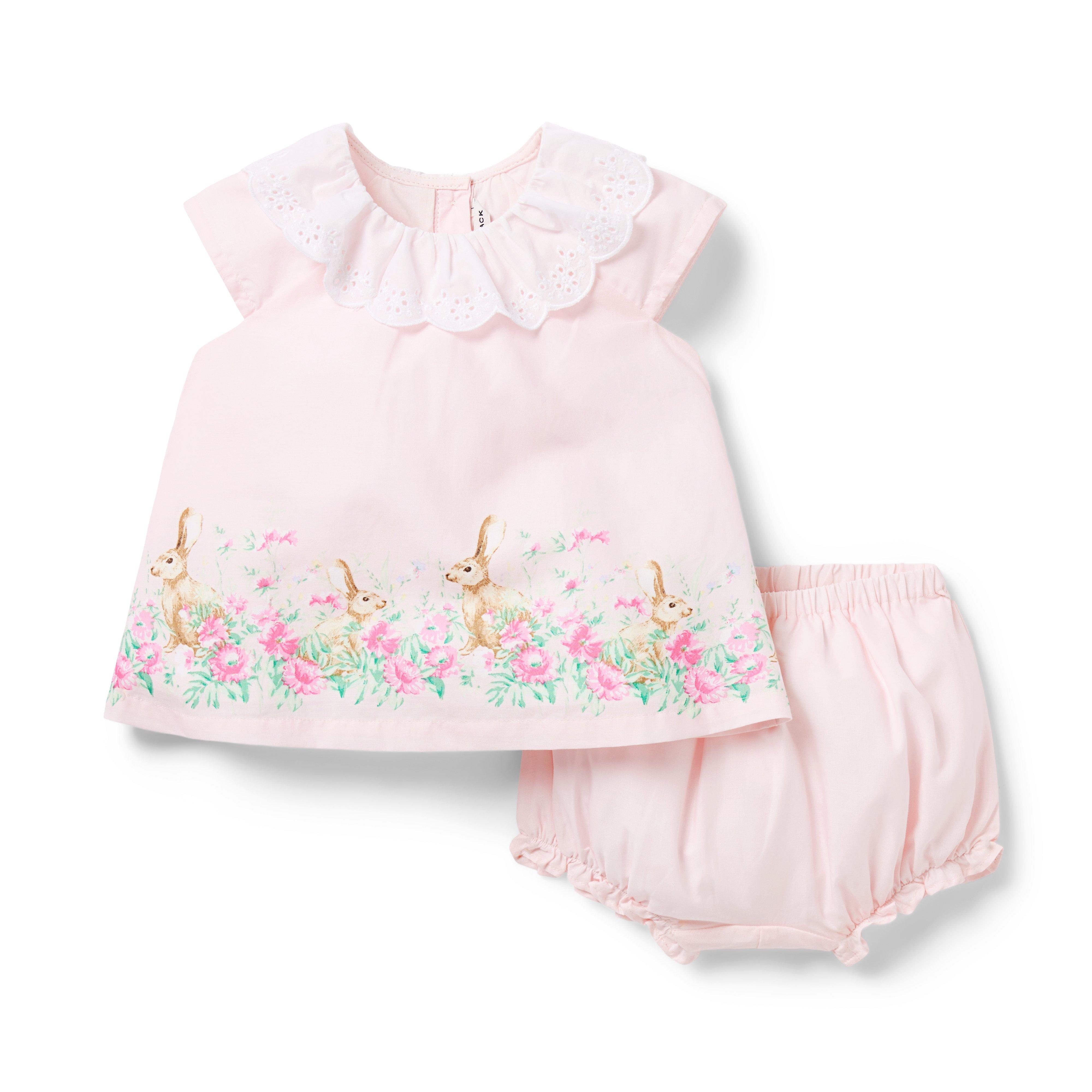 All the details we love for this pure cotton set. Featuring an eyelet collar and floral bunny print, perfect for baby's first Easter or anytime. 100% Cotton Batiste Fully Lined; Short Sleeve Button Back Elasticized Waist Matching Family Styles Available Makes The Perfect Gift For Baby Machine Washable; Imported