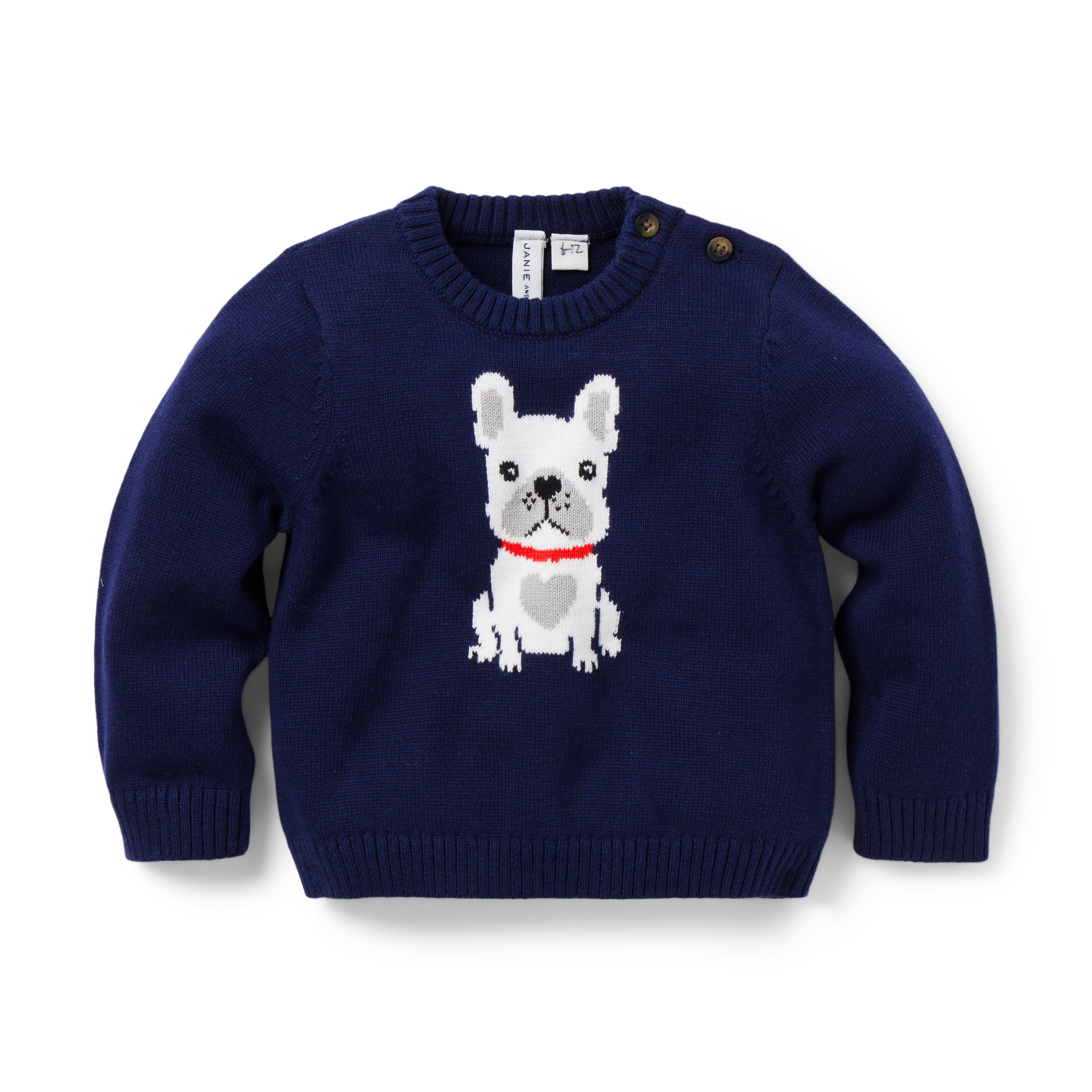 A little puppy love for our soft sweater, featuring an intarsia-knit French Bulldog with heart details. It's perfect for baby's first Valentine's Day or any day. 100% Combed Cotton Long Sleeve Buttons At Shoulder Makes The Perfect Gift For Baby Machine Wash, Inside Out, Gentle Cycle; Imported