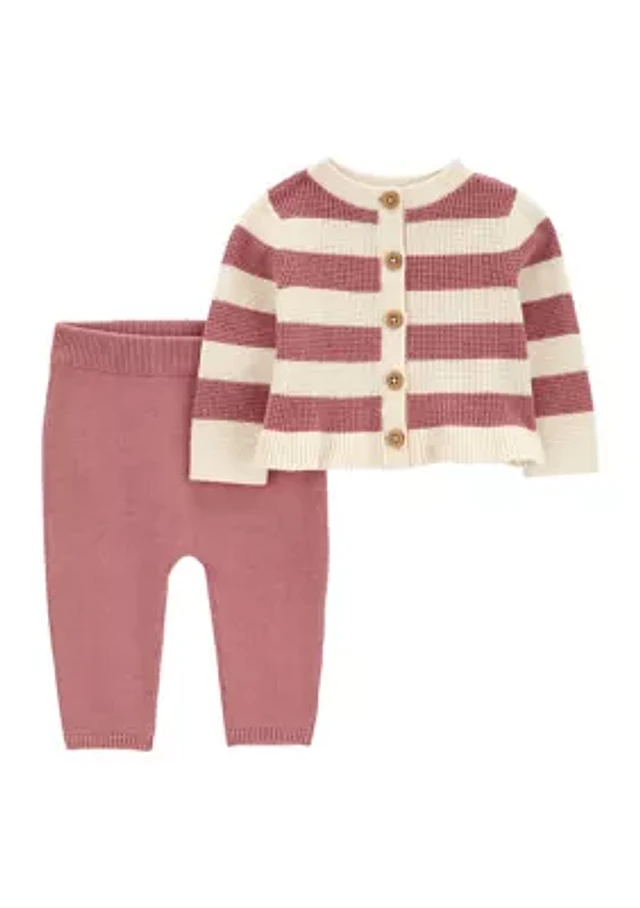 Baby Girls Button Front Cardigan and Pants Set
