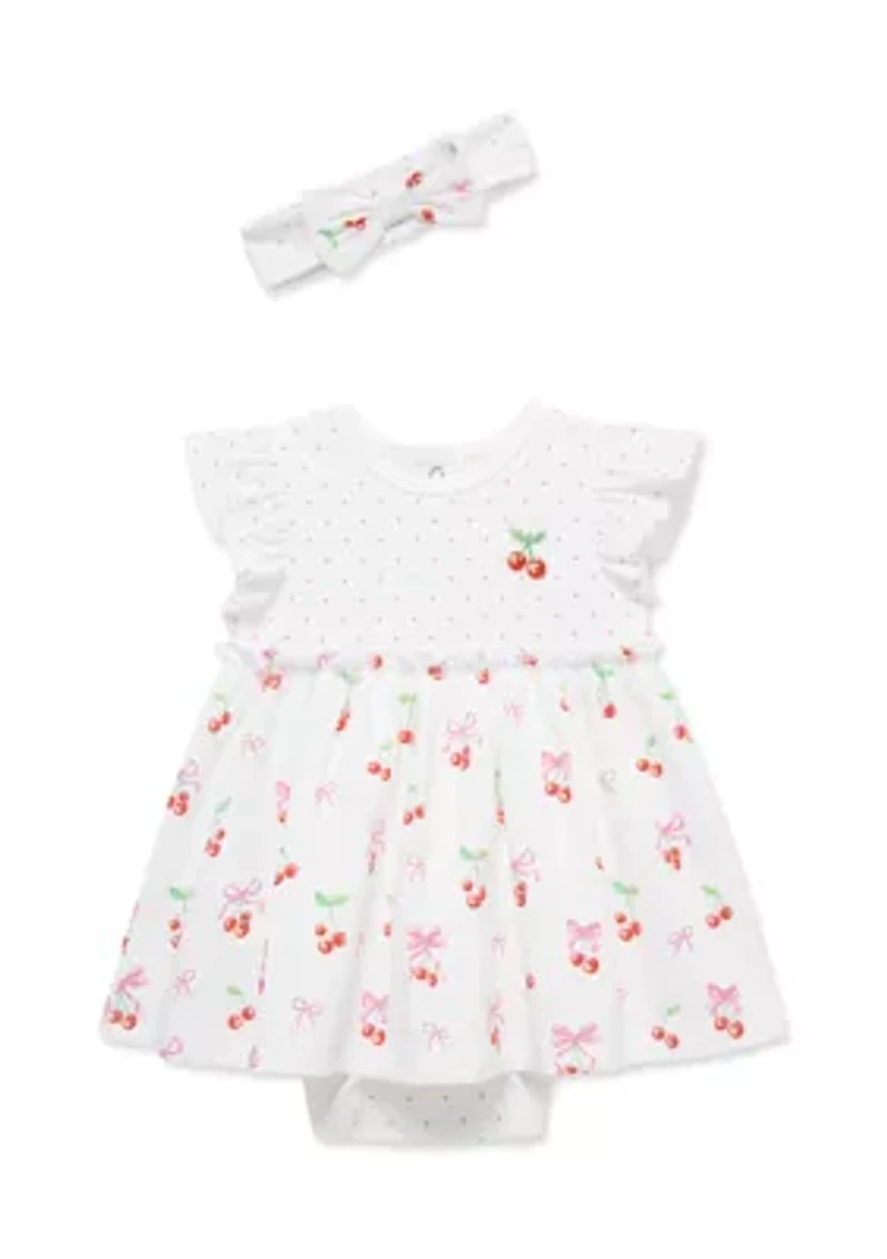 Baby Girls Cherry Bodysuit Dress and Headband Set