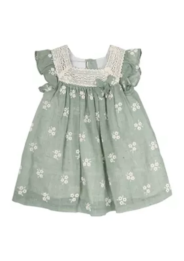 Baby Girls Cotton Eyelet Lace Trim Dress
