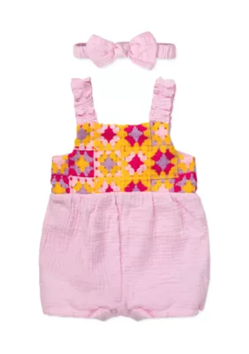 This Baby Essentials romper is perfect for your girl! With a charming crochet design, she'll stay comfortable and look stylish all day long. Imported Material & Care 100% cotton Machine washable