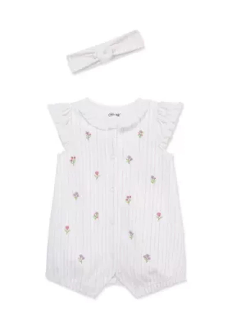 Baby Girls Floral Romper and Headband Set