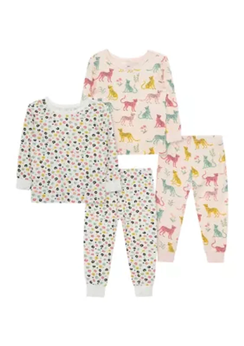 Baby Girls Leopard 4 Piece Bamboo Pajama Set
