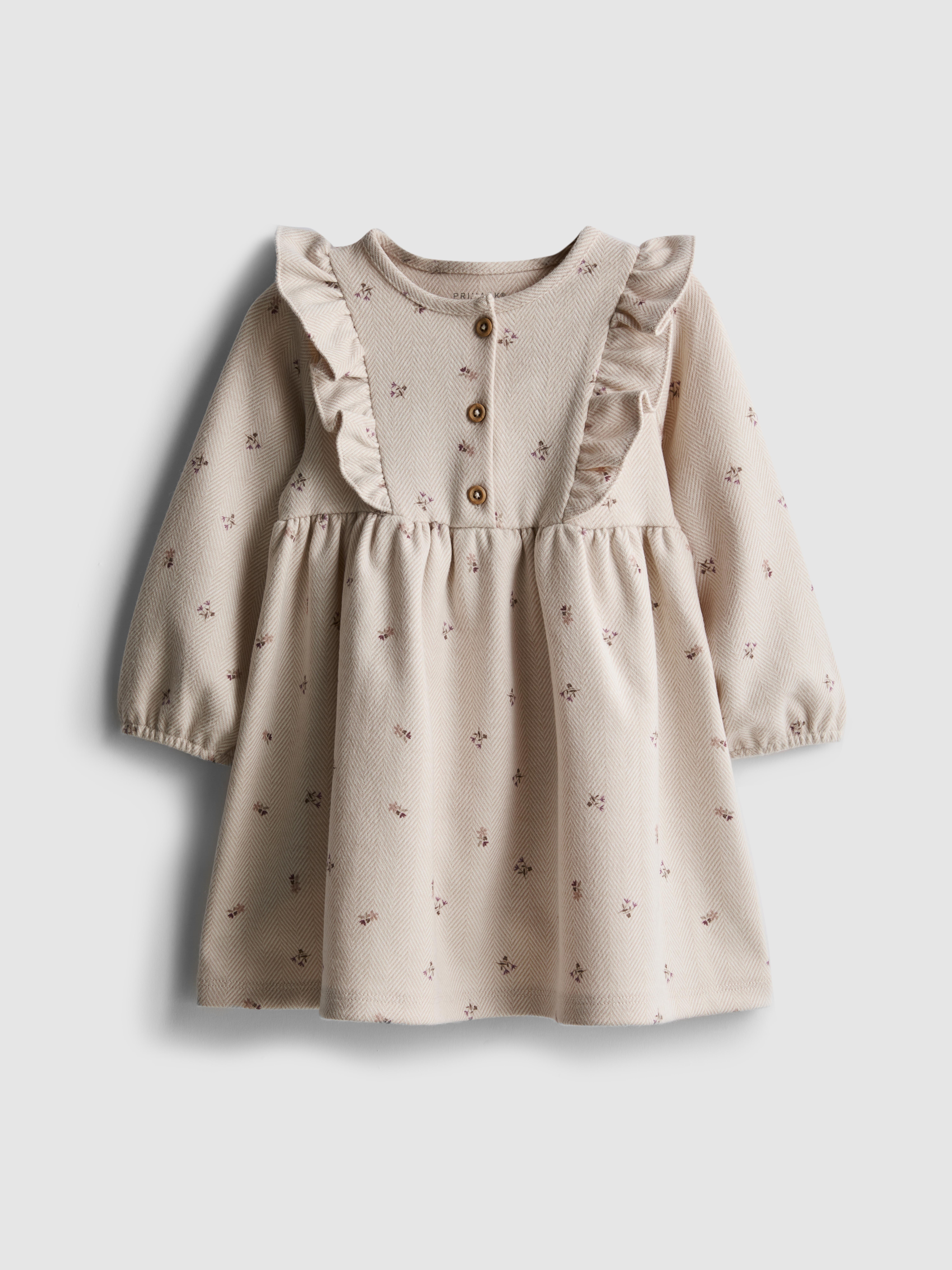 Baby Girls Oatmeal 0-36mths | Floral Ruffle Dress