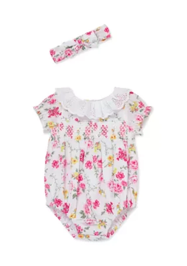Little Me Baby Girls Cotton Blue Roses Footie & Headband Set