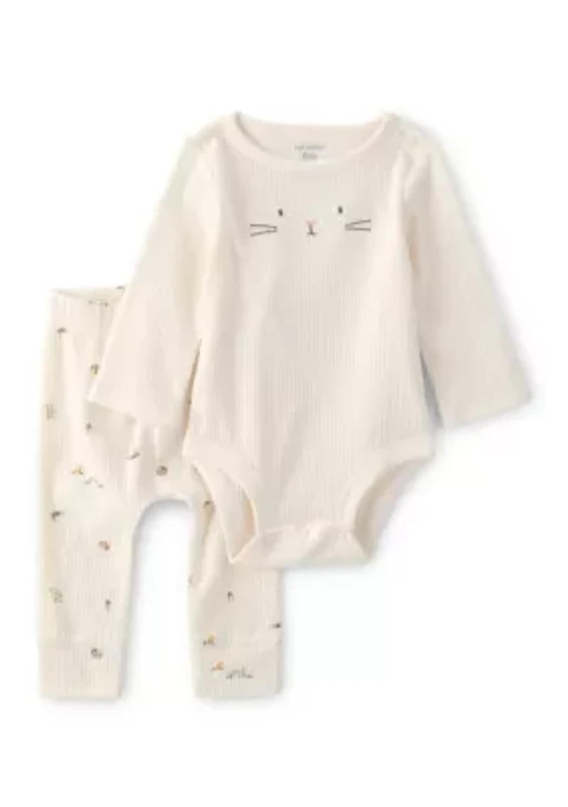 This adorable 2-piece set from Carter's® features a charming Easter Bunny rib t-shirt and coordinating pants for a festive look. Soft color and playful animal print create a stylish yet comfortable outfit perfect for casual outings. Regular fit allows for easy movement, keeping little ones comfortable throughout the day. Long sleeves on the t-shirt provide extra warmth, making it ideal for springtime adventures. Fabric content: 100% cotton for softness and easy care, ensuring durability for everyday wear. 2-piece set Pullover Crew neck Imported Material & Care Cotton, polyester Machine washable