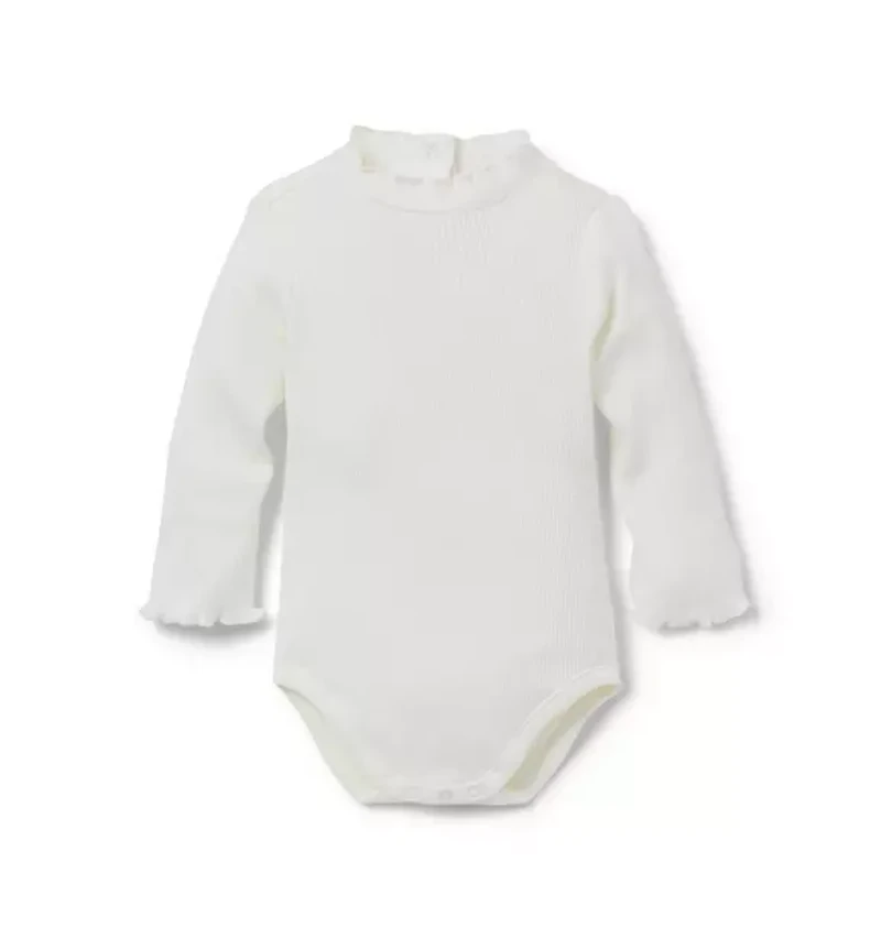The softest bodysuit for all of baby’s first moments. In pure brushed cotton with a cozy turtleneck, ruffle details and textured ribbing for all-day comfort. 100% Cotton Rib Long Sleeve Snaps In Back Snaps Underneath Makes The Perfect Gift For Baby Machine Washable; Imported