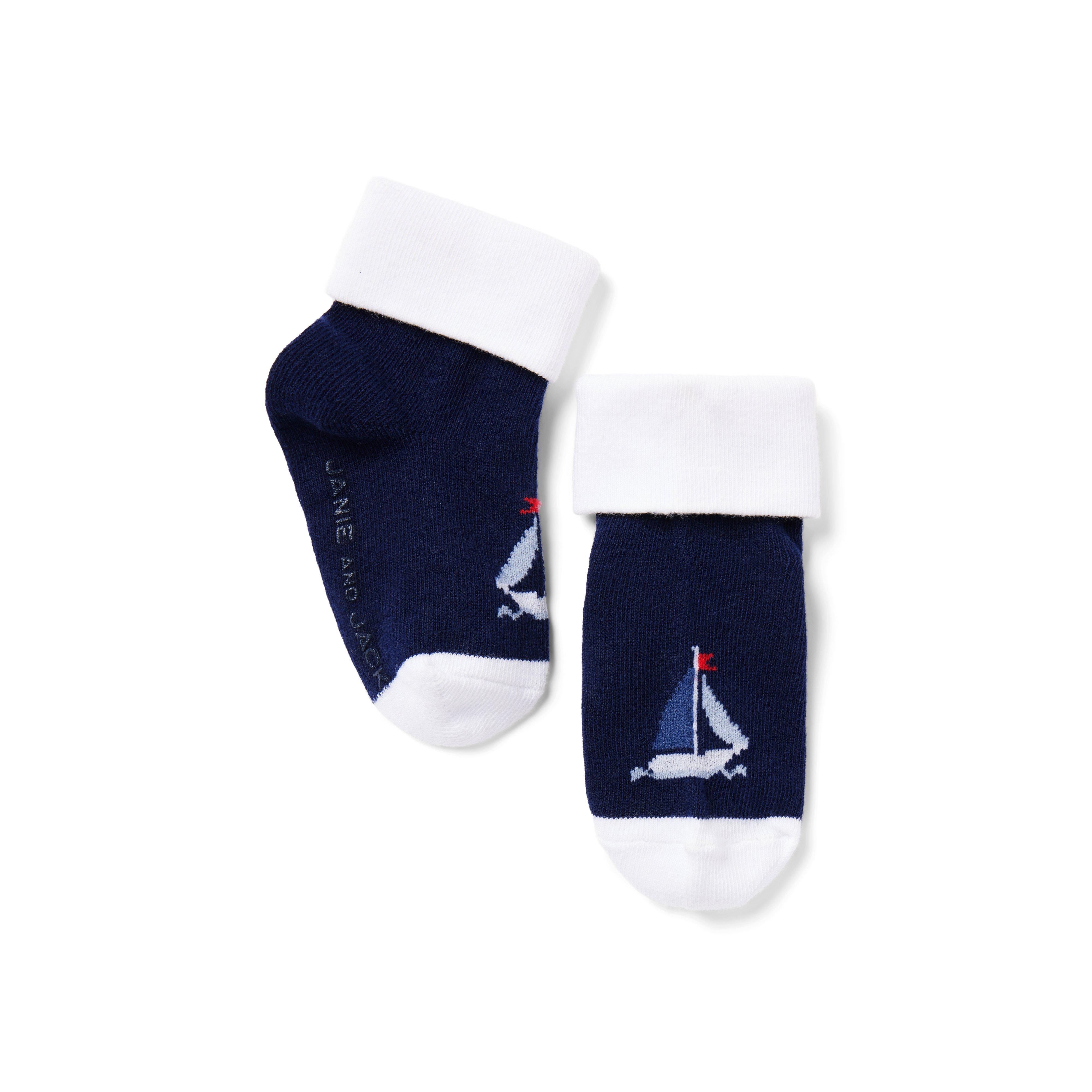 The perfect socks for land or sea, with intarsia-knit sailboats and ribbed fold over cuffs. In a soft and stretchy cotton and nylon blend for all-day comfort. 88% Cotton/11% Nylon/1% Spandex Textured Grips Machine Wash, Gentle Cycle; Imported