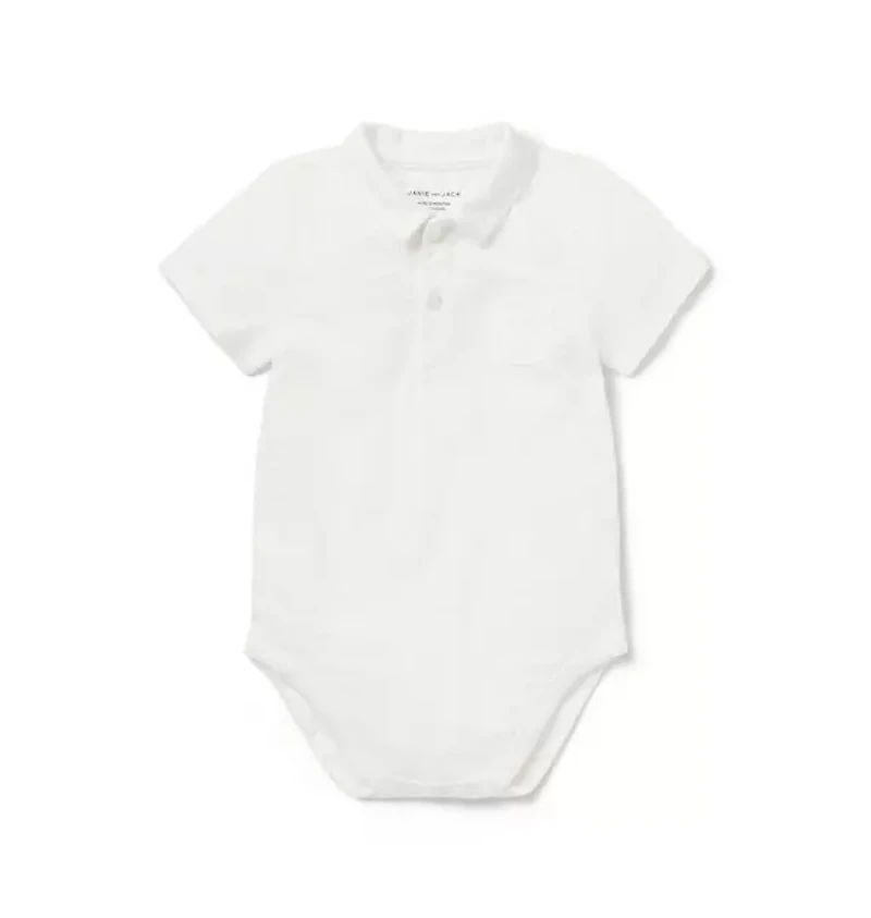 Prep for first moments with our goes-with-everything bodysuit. Designed in soft cotton slub with a little chest pocket detail. 100% Cotton Slub Short Sleeve Half Button Placket; Chest Pocket Snaps Underneath; Makes The Perfect Gift For Baby Machine Washable; Imported