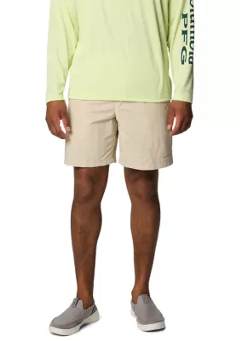 These water shorts from Columbia are a must-have for any man who loves the outdoors. With Omni-Shade™ UPF 50 sun protection, you can stay safe from the sun's harmful rays, while Omni-Shield™ advanced repellency keeps you dry and comfortable. The quick-dry material ensures that you won't be weighed down by wet clothing. The interior mesh brief adds an extra layer of comfort, while the zip-closed security pocket keeps your belongings safe. Drawstring elastic waistband Imported Product Specifications 6.8" Inseam Material & Care Nylon Machine washable
