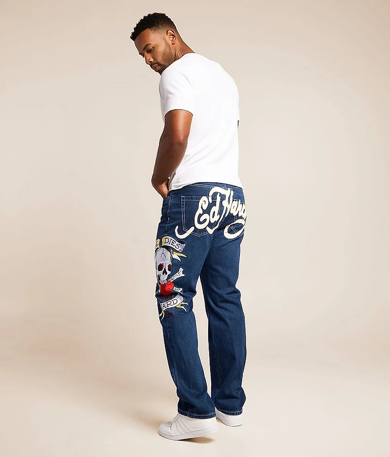 Loose fit jean Regular rise, 18" bottom opening Graphic and patch details Zip fly