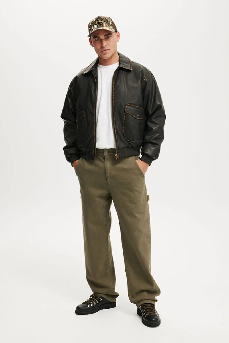 The perfect pair of relaxed-fit pants crafted from heavyweight cotton. Designed with a relaxed waist, relaxed rise, and a relaxed straight leg, they feature carpenter details throughout. Finished with a solid darkolive colourway.