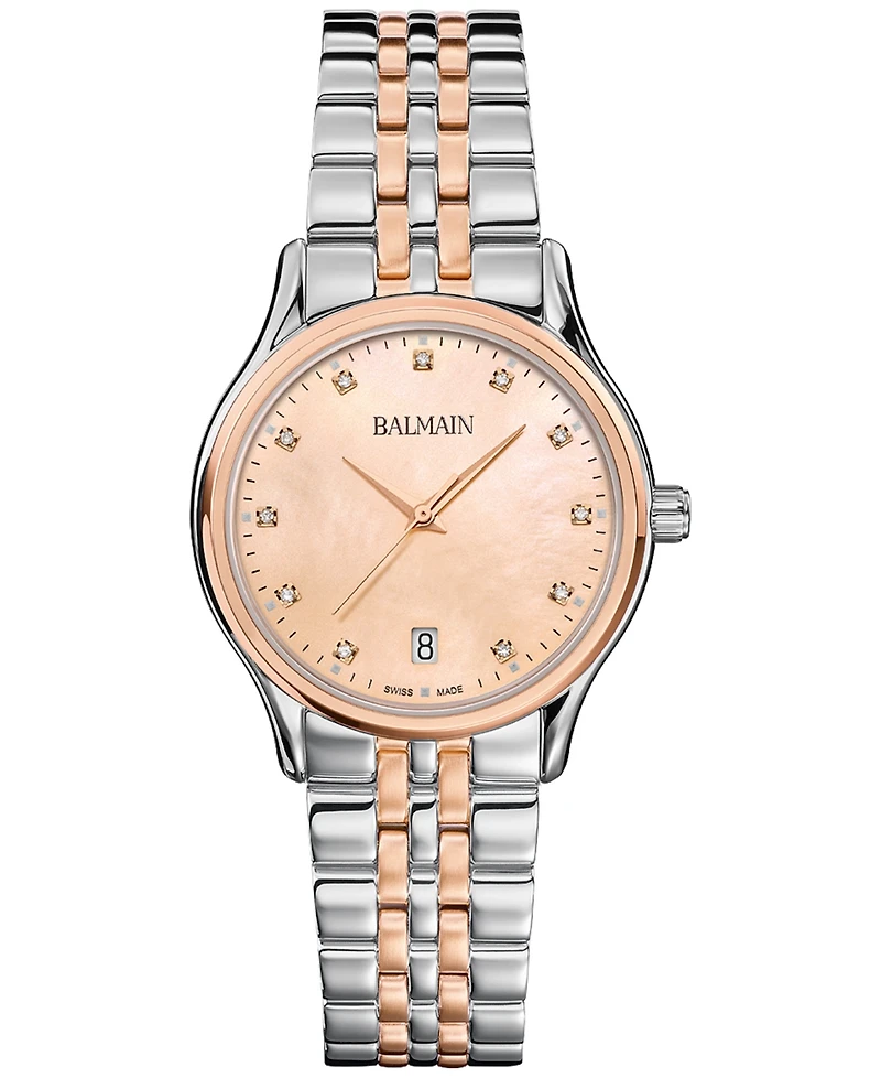 Balmain Women's Swiss Beleganza Diamond (1/20 ct. t.w.) Two-Tone Stainless Steel Bracelet Watch 32mm