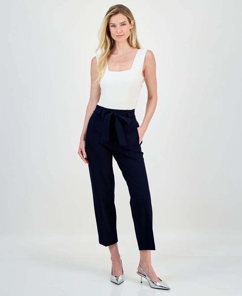 Bar Iii keeps your wardrobe polished to perfection with this pair of tie front capris pants. Go from the office to running errands all in stylish comfort with these mid rise, straight leg bottoms.
