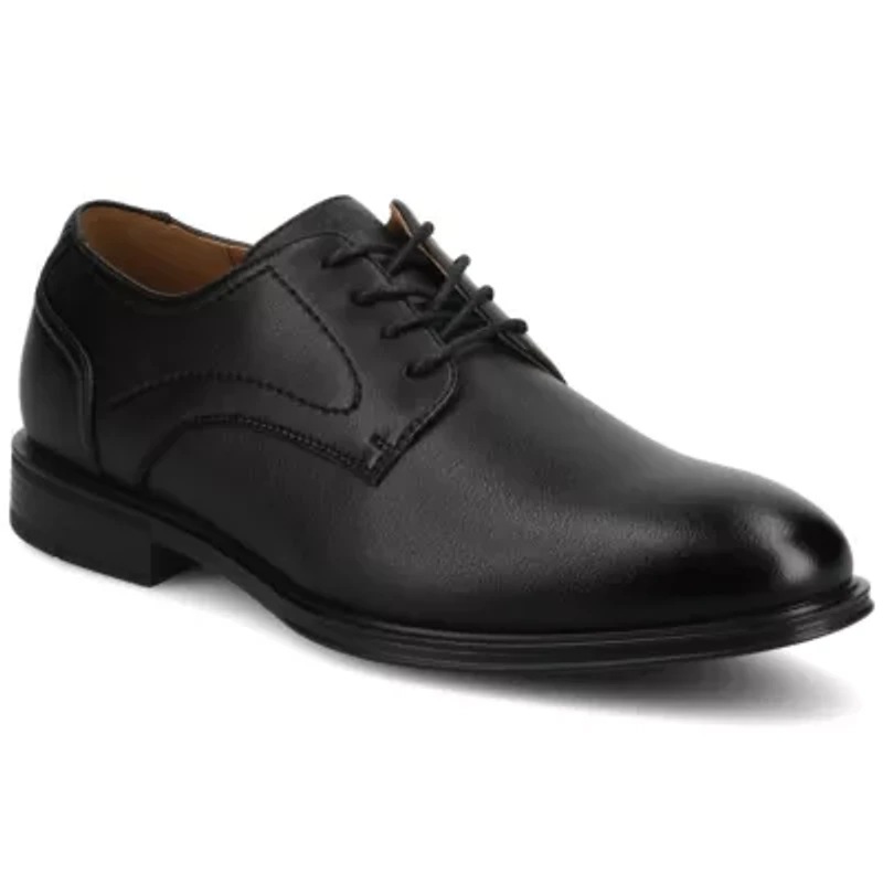 The Barclay Oxford Dress Shoe from Vance features a classic lace-up closure and a sleek almond-toe for a sophisticated, professional and detailed look. Crafted with durable man-made uppers, this shoe combines style and practicality for any formal or dress up occasion. The 6mm Vance Comfort System Insole provides exceptional cushioning, ensuring comfort throughout the day. Also available in wide width. Tie closure Padded insole China Imported Product Specifications 1.25 in Flat M Material Man-made polyurethane