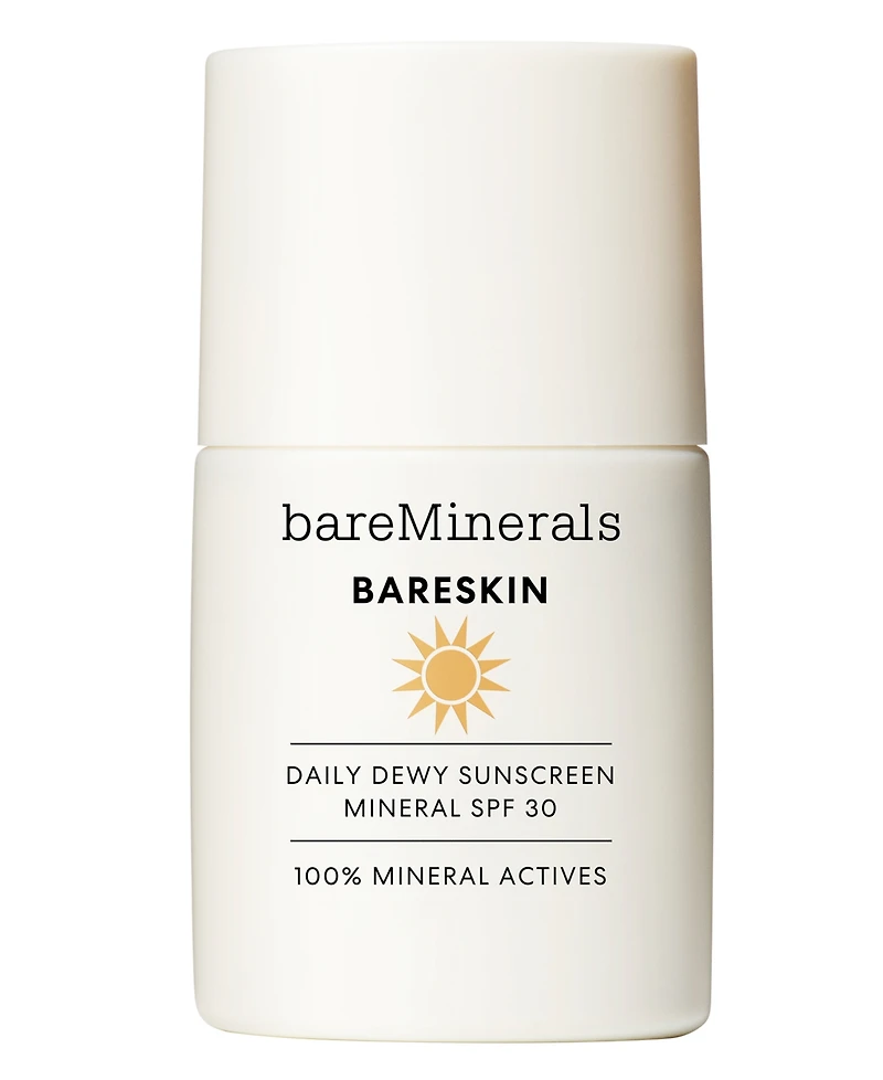 A lightweight, mineral-based Spf sunscreen, this bareMinerals Bareskin Daily Dewy Sunscreen Mineral Spf 30 hydrates, protects, and primes skin for a radiant glow. Powered by a naturally-derived skincare base, it delivers deep hydration while detoxifying botanicals help defend against oxidative stress and visible signs of aging. This multitasking formula is suitable for all skin tones and doubles as a glow-enhancing makeup primer.