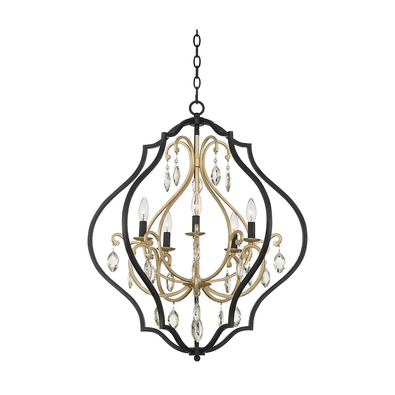 Barnes and Ivy Clara Black Soft Gold Iron Pendant Chandelier 26 1/2" Wide French Amber Crystal 5-Light Fixture for Dining Room House Home Foyer Entryw