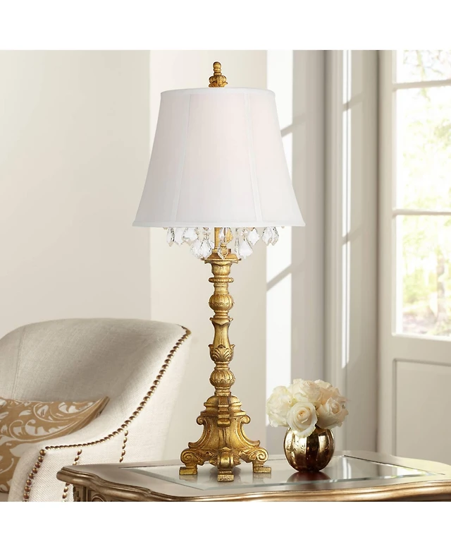 Barnes and Ivy Duval Traditional Table Lamp 33" Tall Aged Gold Candlestick Crystal Fabric Bell Shade for Bedroom Living Room Bedside Office Famil