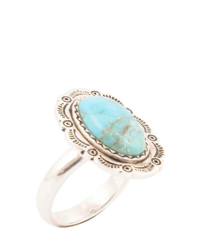 Barse Pueblo Genuine Turquoise Sterling Silver Oval Ring