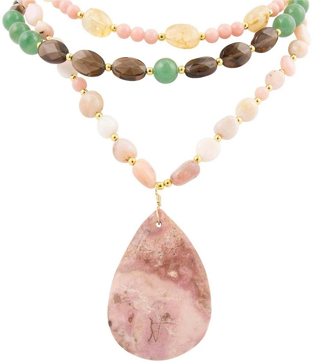 Barse Meadow Pink Rhodonite Golden Statement Multi-Strand Necklace