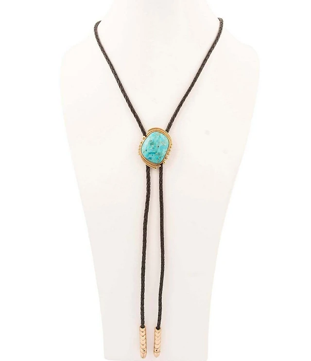 Barse Rawlins Turquoise Black Leather Golden Bolo Necklace