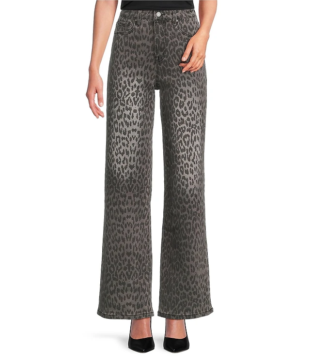 Bayeas Stretch Denim Leopard Print Wide Leg Jeans